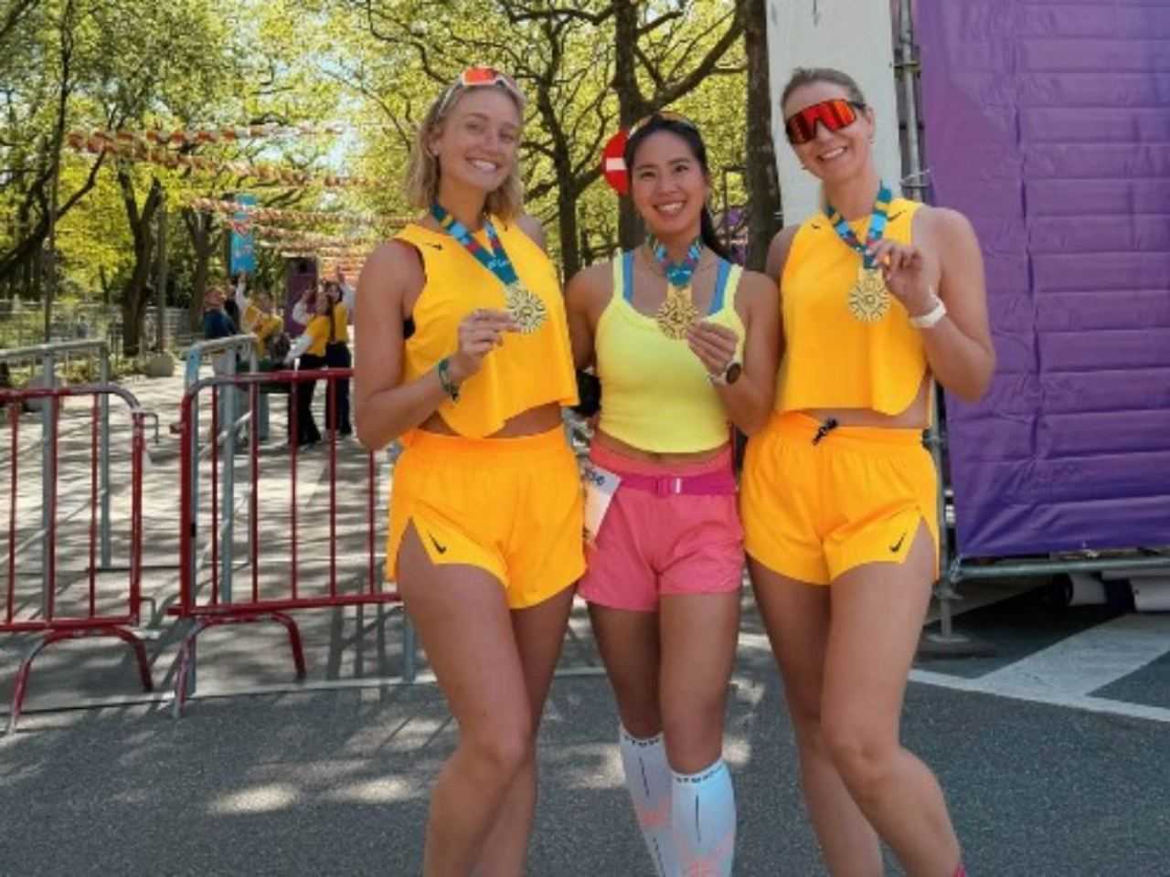 Blij met haar medailleNa de finish poseerde Julie Vermeire samen met haar medaille, een moment dat voor veel deelnemers hét hoogtepunt is. De Baloise 10 Miles is niet alleen een sportieve uitdaging, maar ook een evenement waar sfeer en voldoening centraal staan.